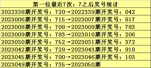 第三位冷码判断:上期开出奖号5,遗漏值为10期,当今该位最冷号码为7,遗漏值为26期,本期不时摒除。